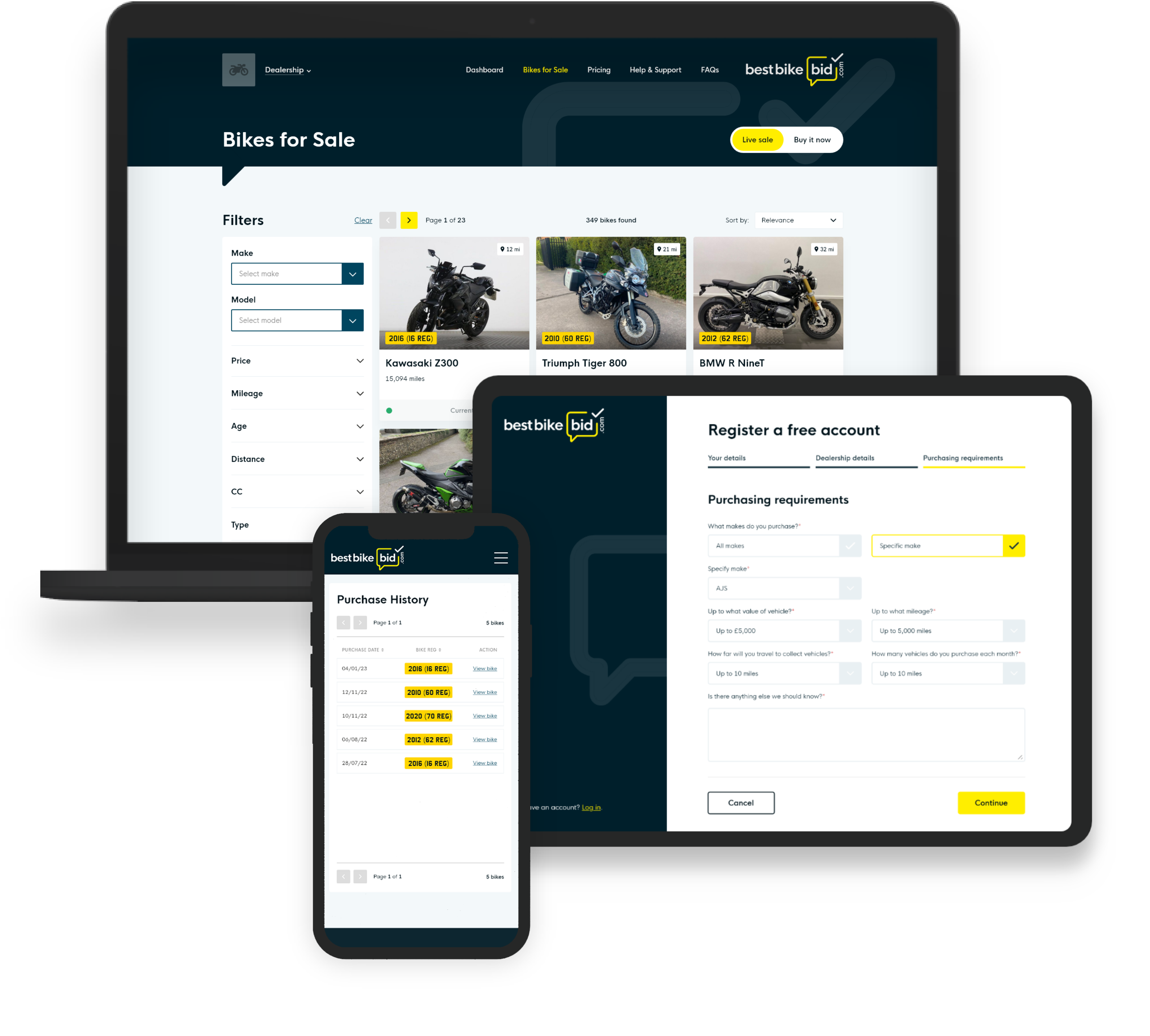Bestbikebid.com launches in Spring 2023. Registered dealers will receive regular updates regarding launch progress.